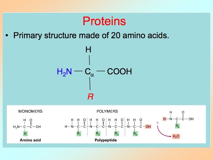 Organic Molecules of Cells • • Proteins Carbohydrates Lipids Nucleic acids