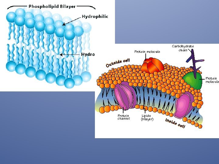 Along w/ lipids, the cell membrane also has proteins & carbohydrates embedded in it. The lipid bilayer is often called a mosaic, b/c it is made up of many different parts.