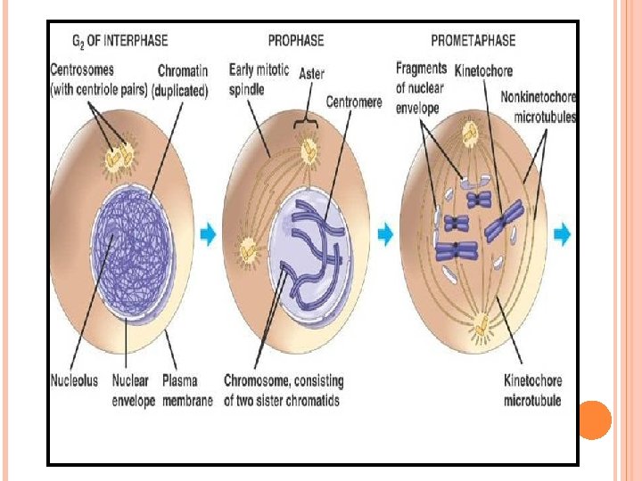 PROPHASE: �During prophase the cell nucleus becomes spheroid. �There is increase in the viscosity of cytoplasm. �The chromosomes shorten and thicken and become stainable. �By the end of prophase some chromosomes may contract up to 1/25 of their length in early prophase.