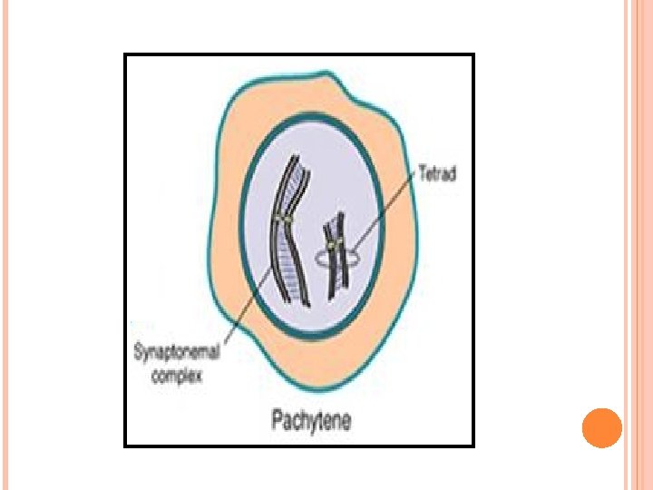 Pachytene: thick threads �Clear appearance of tetrad. �Characterised by appearance of recombination nodules. �Exchange takes place at sites where recombination nodules (the chiasmata) have formed. (Crossing over occurs between non- sister chromatids of homologous chromosomes. �Enzyme recombinase is involved in crossing over.