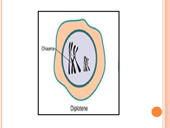 Diplotene: ▪ Diplonema, or Diplotene means "two threads. “ ▪ Synaptonemal complex degrades. ▪ The chromosomes uncoil a bit. ▪ The homologous chromosomes remain tightly bound at X-shaped structure called chiasmata.