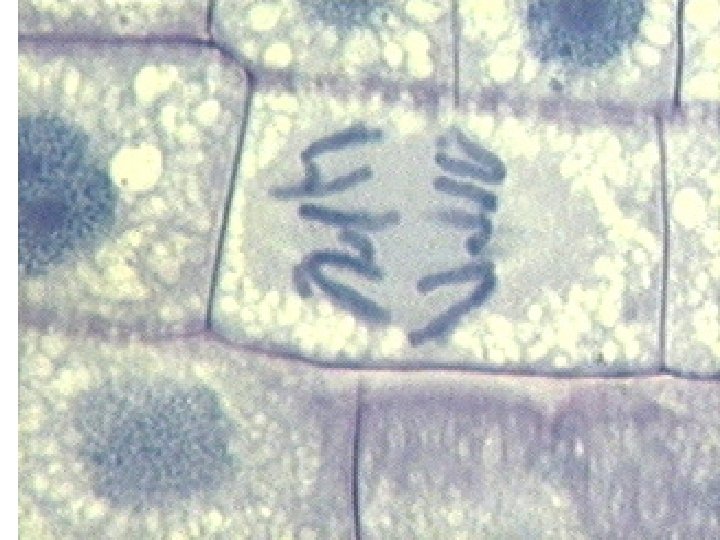 The results of mitosis • The cytoplasm and organelles will continue to separate until there are TWO new cells • Each new human cell (except egg and sperm) has 46 chromosomes which is 23 pairs • In animals, the cell membranes pinch apart at the end to make new cells • In plant cells, there is a new cell wall/plate that forms between the new nuclei to make the new cells • Practice math problem: