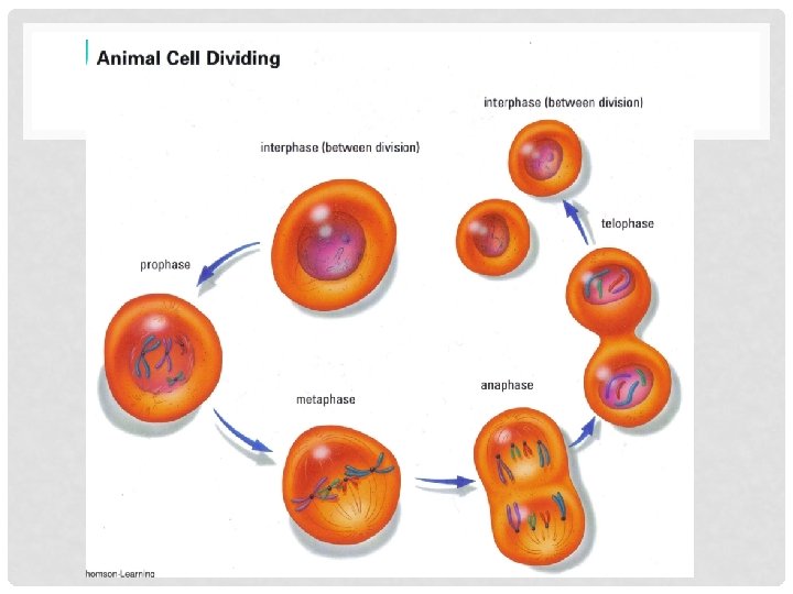 6. INTERPHASE • The daughter cells begin to grow and duplicate their genetic material again.