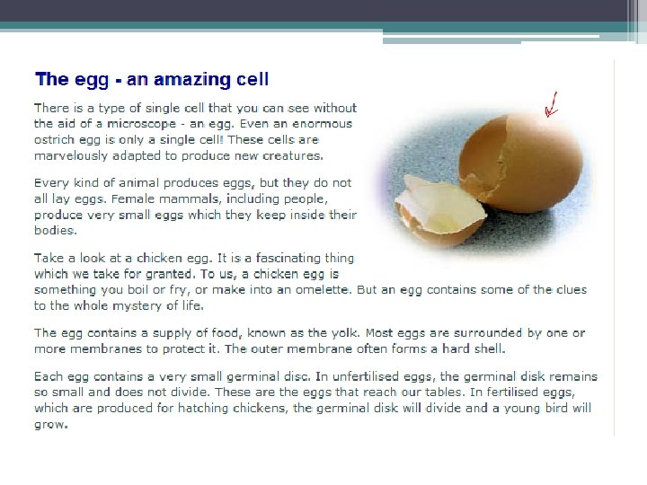 RESEARCH Egg Anatomy • Eggs are cells, but big ones! • Most of a cell’s cytoplasm is water! • Cells have a cell membrane that controls what goes in and out.