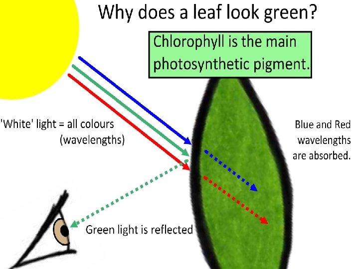 Photosynthesis § Plants have pigments that absorb light. § Chlorophyll is the main pigment that gives the plant its green color. § Chlorophyll is found in Chloroplasts.