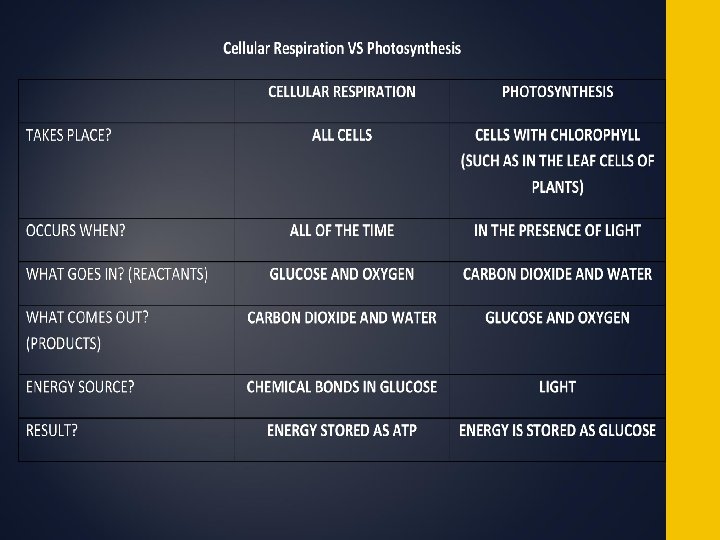 Fermentation Summary • Occurs when oxygen is NOT present (ANAEROBIC) • Lactic Acid Fermentation occurs in Muscle Cells (makes them tired) • Alcoholic Fermentation occurs in plant cells and yeasts (makes ethanol) • Nets 2 ATP