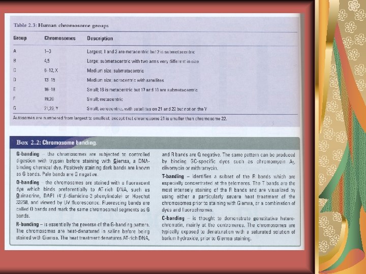 Ø Originally the chromosomes were assigned to groups A through G according to their general size and the position of the centromere. With banding, each chromosome is individually distinguishable. Ø The diagrammatic representation of the banding pattern is the idiogram.
