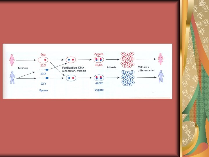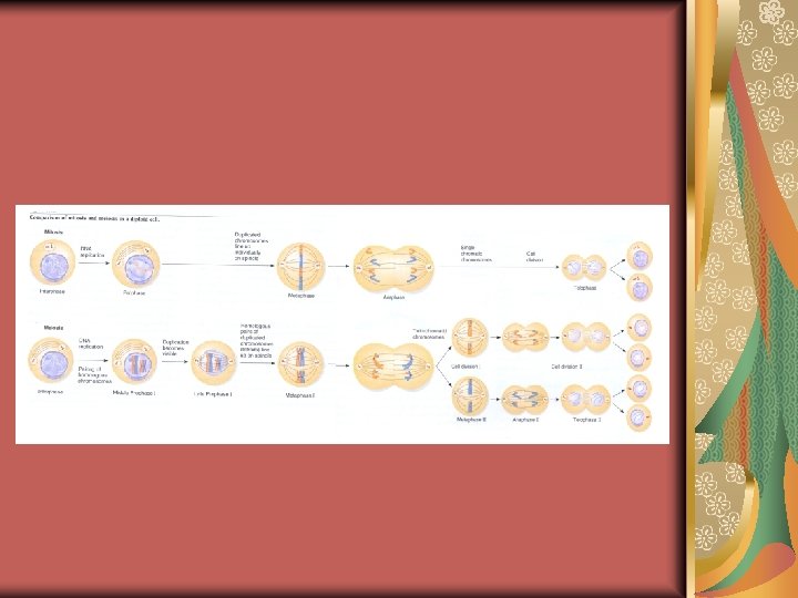 Meiosis’ stages 3 4. Diplonema: (mid-to late prophase I, the diplotene stage): the synaptonemal complex disassembles and the homologous chromosomes begin to move apart. Ø The result of crossing-over becomes visible during diplonema as a cross-shaped structure called a chiasma (plural, chiasmata). Ø Even though the sex chromosomes are not homologous, the Y chromosome of eutherian (placental) mammals has small regions at each end that are homologous to regions on the X chromosome. Ø These pseudoautosomal regions (PARs) pair in male meiosis, and crossing-over occurs between them. Ø When the PAR is deleted from the short arm of the Y chromosome, pairing between the X and Y chromosomes does not occur, and male is sterile.