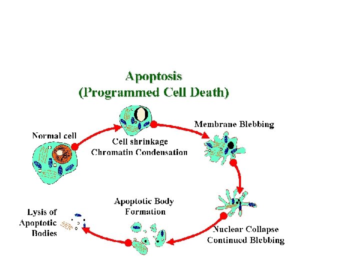 Apoptosis • cell death induced by a tightly regulated suicide program in which cells activate enzymes capable of degrading the cells' own nuclear DNA and nuclear and cytoplasmic proteins. • Fragments of the apoptotic cells then break off, giving the appearance that is responsible for the name (apoptosis, "falling off"). .