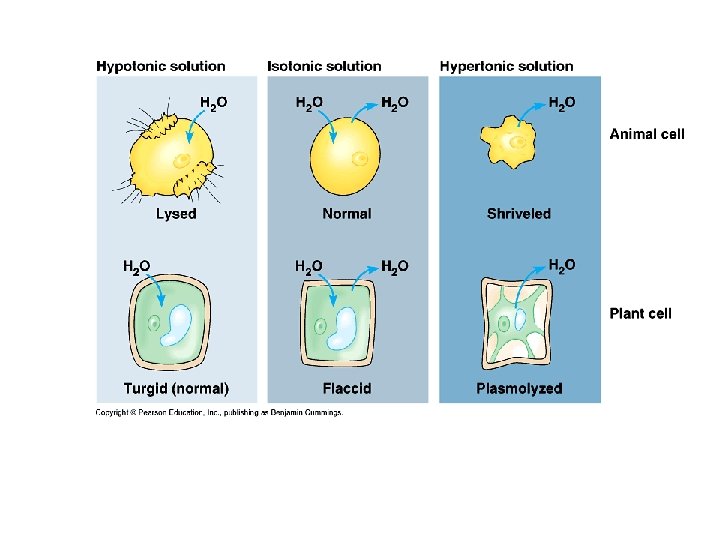 Types of Tonicity • Hypotonic – Solution conc. Of solute is lower than the conc. Inside the cell. • Water conc. Higher outside of cell, water diffuses in • Cell gets bigger