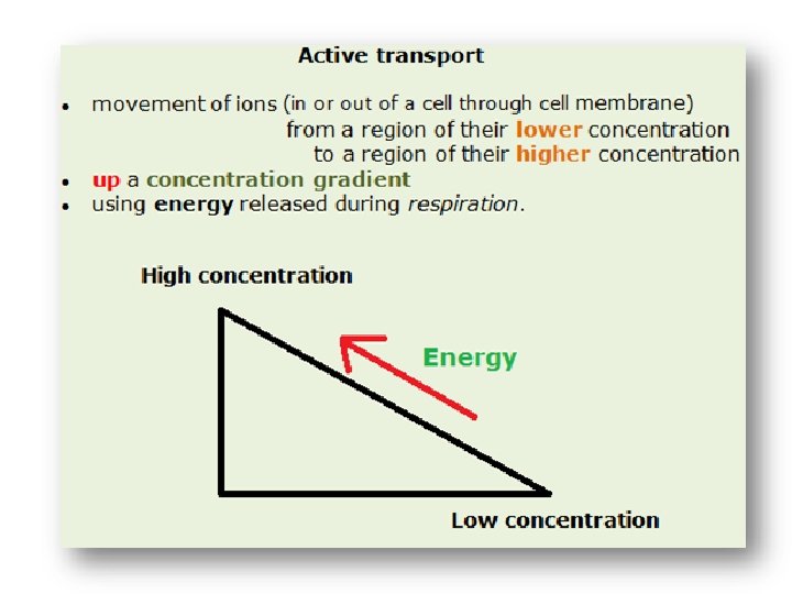 Active Transport • Requires cells to expend energy to move molecules against the solute’s concentration gradient.
