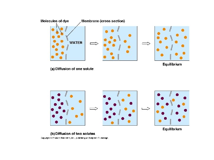 Diffusion notes • Remember molecules are always moving. • Diffusion: molecules moving from an area of high concentration to an area of low concentration • Equilibrium: concentrations equal out but molecules continue to move