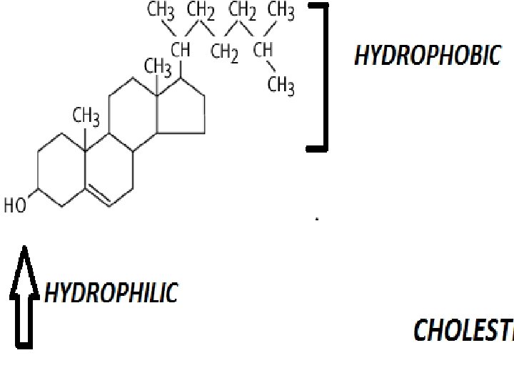 CHOLESTROL. • Cholestrol modify the fluidity of the membrane at temperature below Tm. It interferes with interaction of hydrocarbon tails of fatty acids and thus increase fluidity. • At temperature above Tm it limits disorder because it is more rigid than the hydrocarbon tails of fatty acid and can’t move in the membrane to the same extent thus limiting fluidity.