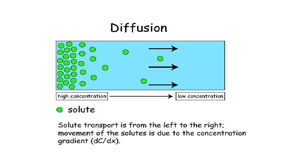 DIFFUSION • Particles move from areas of high concentration to low concentration. (Down concentration gradient) • Particles spread evenly. • Does NOT require energy.