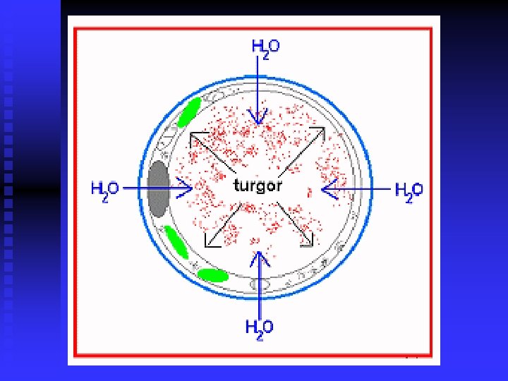 Turgor Pressure n The pressure that a plant cell places on its cell wall n Caused by the plant’s cellular environment being almost always hypotonic n Turgor provides structural support in non-woody plants