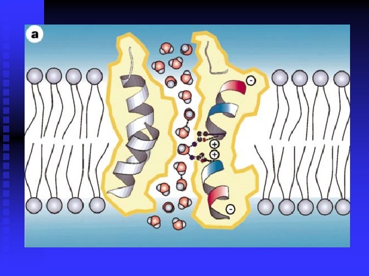 Aquaporin-1 n Water sometimes seems to come into the cell faster than osmosis can account for n Aquaporin-1 is an integral protein that acts as a gated water channel n Aquaporin-1 allows water to pass through but not protons