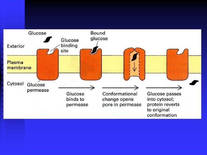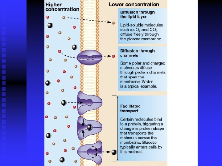 Facilitated Diffusion Occurs down a concentration gradient n Membrane can be made permeable to certain molecules by carrier or transport proteins n