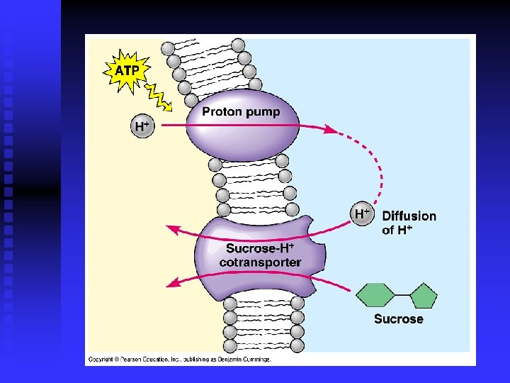 Cotransport n Electrochemical gradient- higher concentration of electrical charges and molecules in one place than in another n Moving down the gradient can supply enough energy to push a molecule through a protein transport back against the gradient