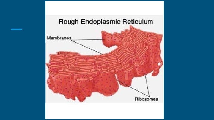 Rough Endoplasmic Reticulum Structure: Thin, folded membranes, attached to nucleus Function: Rough ER = has ribosomes (production of proteins)