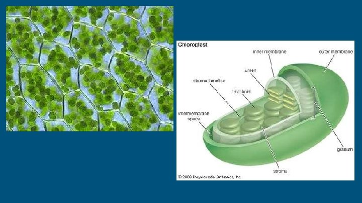 Chloroplast Structure: only in plant cells. Also has 2 membranes and chlorophyll. Function: take energy (photons) from sunlight and convert into chemical energy that the cell can use. Photosynthesis. Chlorophyll is pigment that absorbs light energy and causes green color!