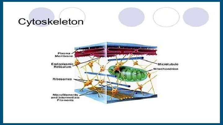 Cytoskeleton Structure: network of protein filaments that help cell maintain shape. Function: used in movement and support.