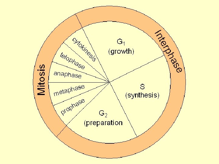 The Cell Cycle (phases in the life cycle of a cell) Interphase (G 1, S, G 2) Cell Division. Prophase Metaphase Anaphase Telophase Cytokinesis