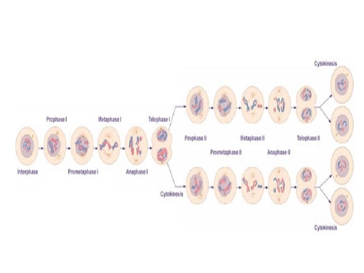 Meiosis • Has 2 stages. The first stage is the same as mitosis. The cell copies and divides. The those cells just divide again, and end with ½ the chromomes. • Result on formation of egg and sperm