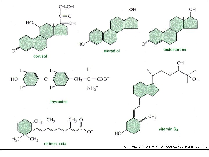 B. Intracellular Receptor Signaling: Steroid Hormones • Overview of Steroid Hormone Action: – Steroid hormone (small, hydrophobic) is secreted by glandular cells and released into bloodstream (usually transported via shuttle proteins) – The hormone enters the cytoplasm of cells – In the cytoplasm of target cells, the hormone binds to steroid hormone receptor protein
