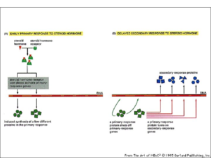 B. Intracellular Receptor Signaling: Steroid Hormones • Overview of Steroid. . . (cont. ): – The primary response proteins usually inhibit further transcription of their own genes, and they may activate transcription of secondary response genes.