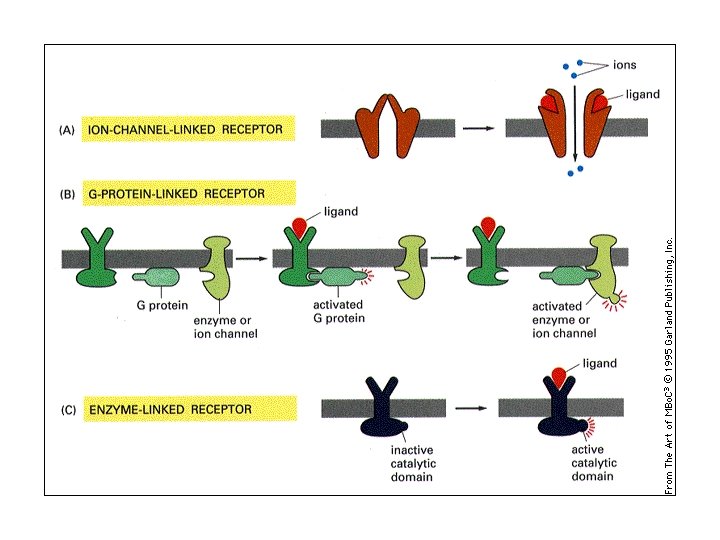 C. Cell Surface Receptors: Types • Three known classes of cell surface receptors – Ion channel-linked, G-protein-linked, Enzymelinked – An activated cell-surface receptor triggers a phosphorylation cascade