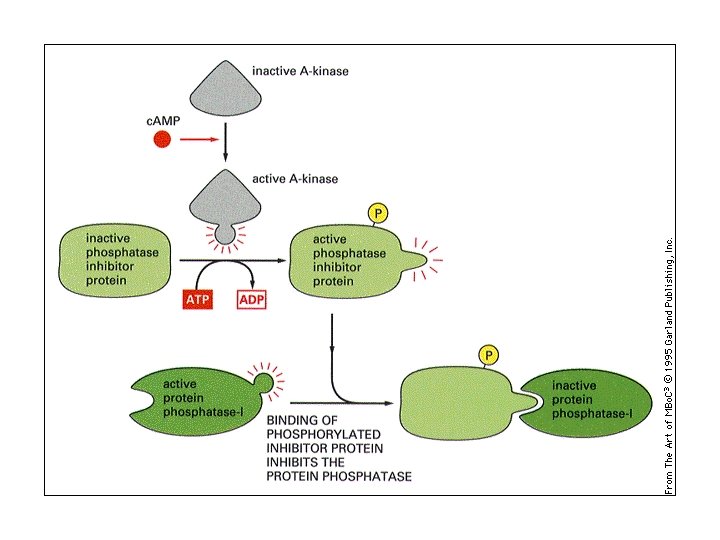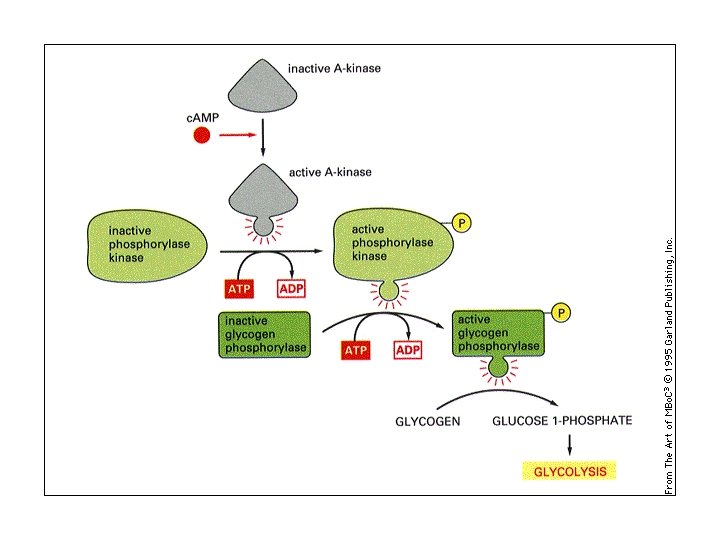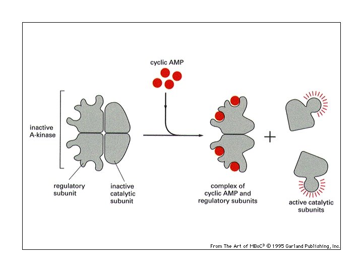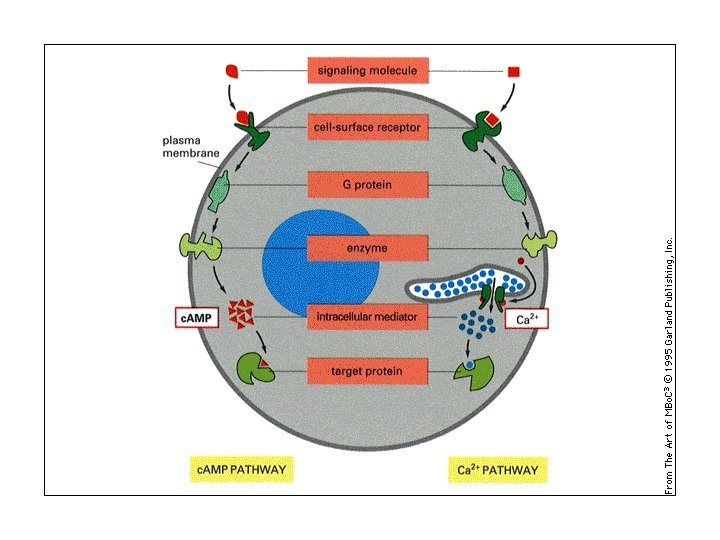 B. G-linked Receptors • What do G-protein receptors do? – G-protein receptors activate trimeric G-protein – Activated G-protein alters the cellular concentration of a “second messenger”: usually cyclic AMP or Ca 2+ – The second messenger activates a protein kinase enzyme – The protein kinase phosphorylates another enzyme and alters its activity