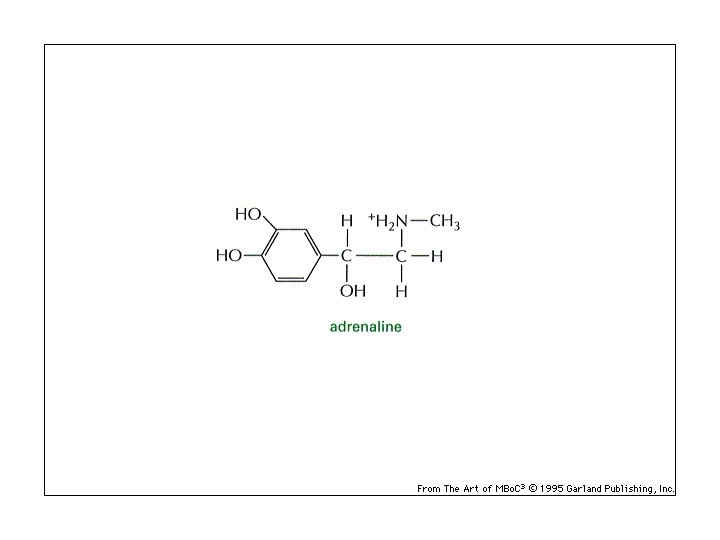 B. G-linked Receptors • Action of epinephrine on glycogen metabolism – Epinephrine (adrenaline) is released from the adrenal gland in times of stress. It has two overall actions on glycogen metabolism: it inhibits glycogen synthesis, and it promotes glycogen breakdown – This is mediated by a protein phosphorylation cascade