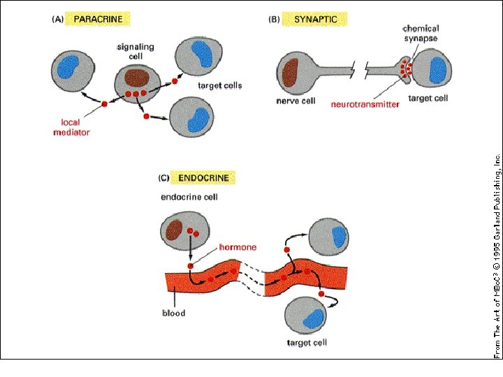 A. Types of Cell Signaling • Three forms of signaling by secreted molecules – Paracrine – Synaptic – Endocrine