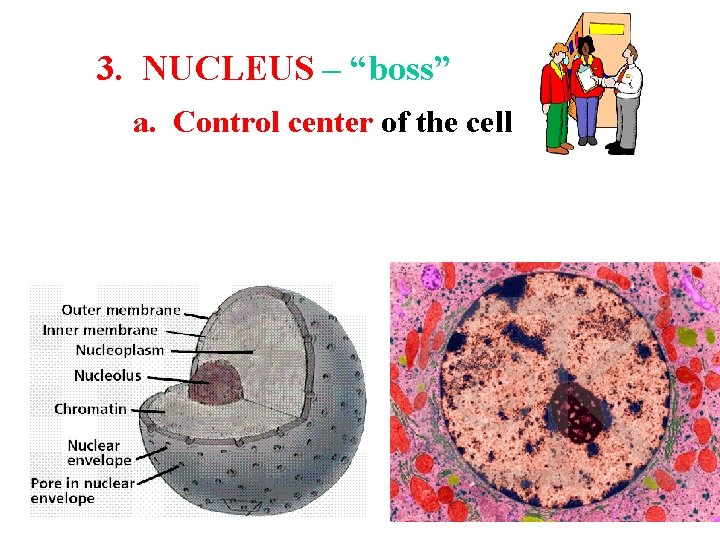 b. NUCLEOLUS » Controls cell reproduction and makes ribosomes which make proteins