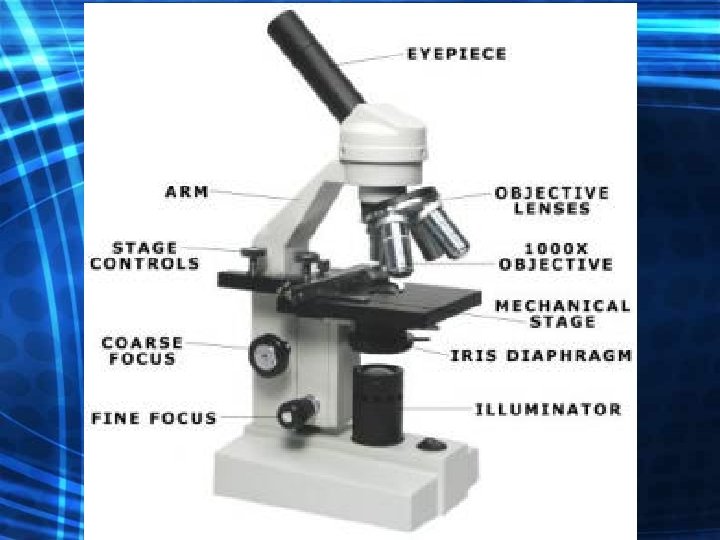 Compound Light Microscopes • Consists of a series of glass lenses and uses visible light to produce a magnified image. • Each lens in the series magnifies the image of the previous lens. • The maximum magnification without blurring is around 1000 x.