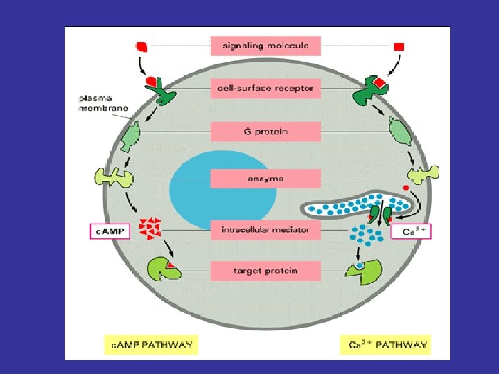Combination of a receptor with the hormone (ligand) leads to activation of adenylate cyclase bound also to the membrane. Increased activity of adenylate cyclase increases c. AMP in the cytosol. c. AMP acts inside the cell to alter the rate of process(es).