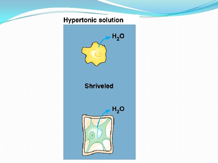 3 Types of Osmotic Solutions �Hypertonic: movement of water out of the cell through the selectively permeable membrane �causes the cell to shrink