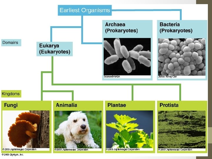 Domain and Kingdoms • Six-Kingdoms, 3 Domain System • Based on the two cell types • Based on phylogenetic relationships revealed by genetic evidence 1. 2. 3. Domain Eukarya Domain Eubacteria (Bacteria) Domain Archaea