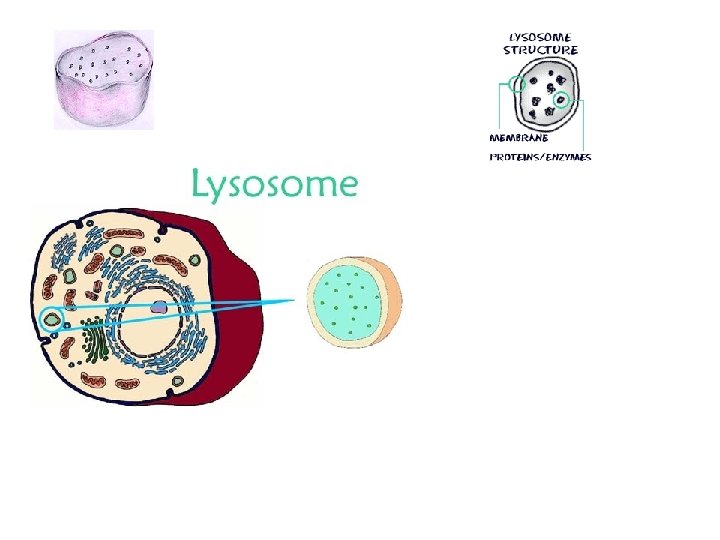 Vesicle with food Animal Cell Lysosome 8) Lysosome: • “Clean-up and Recycling Crew” • digest food particles, wastes, cell parts, and foreign invaders.