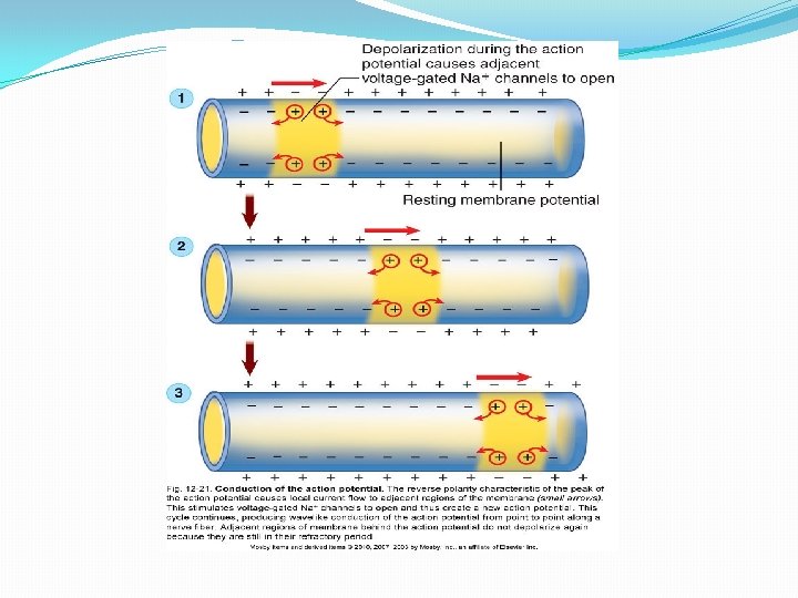 �Depolarization occurs when a stimulus hits the nerve and Na++ flows into the axon in a wave pattern. As the stimulus travels it is called an ACTION POTENTIAL. �Na++ is High outside the cell (4: 1) �K++ is High inside the cell (30: 1) �Na++ flows into the area of lower potential and is pumped out by Active transport (requiring ATP) after the impulse passes. This is called REPOLARIZATION �The difference between the inside and outside of the cell is called the RESTING POTENTIAL.