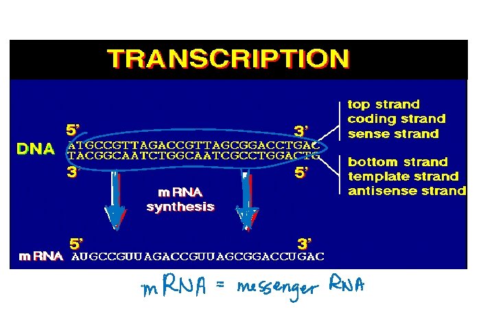 Overview m. RNA Start codon A U G G G C U C C A U C G G C A U A A codon 1 Protein codon 2 Methionine codon 3 Glycine Serine codon 4 codon 5 Isoleucine Peptide bonds codon 6 Glycine codon 7 Alanine Stop codon