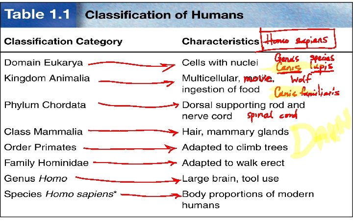 Basis for Modern Taxonomy • Homologous structures (same structure, different function) • Similar embryo development • Similarity in DNA, RNA, or amino acid sequence of Proteins