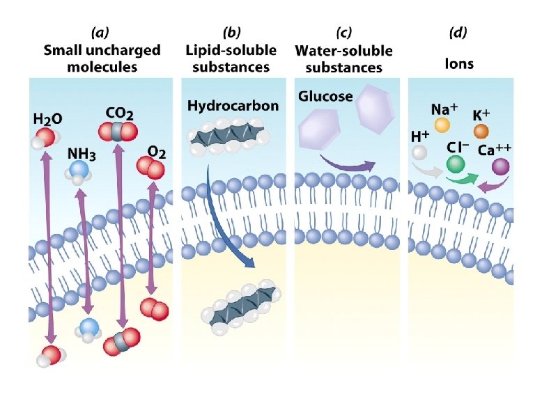 Movement Across the Plasma Membrane • A few molecules move freely – Water, Carbon dioxide, Ammonia, Oxygen • Carrier proteins transport some molecules – Proteins embedded in lipid bilayer – Fluid mosaic model – describes fluid nature of a lipid bilayer with proteins