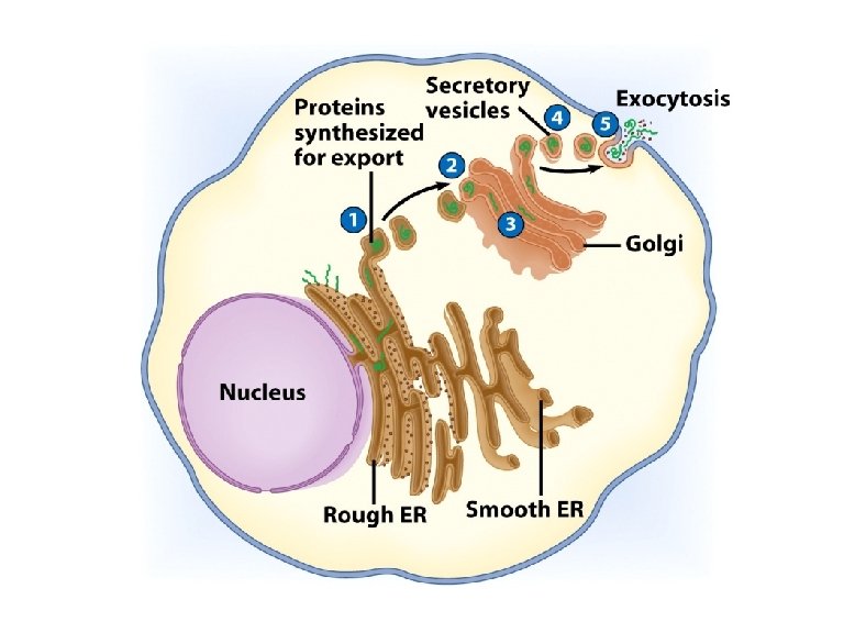 Rough Endoplasmic Reticulum • Ribosomes attached to surface – Manufacture protiens – Not all ribosomes attached to rough ER • May modify proteins from ribosomes