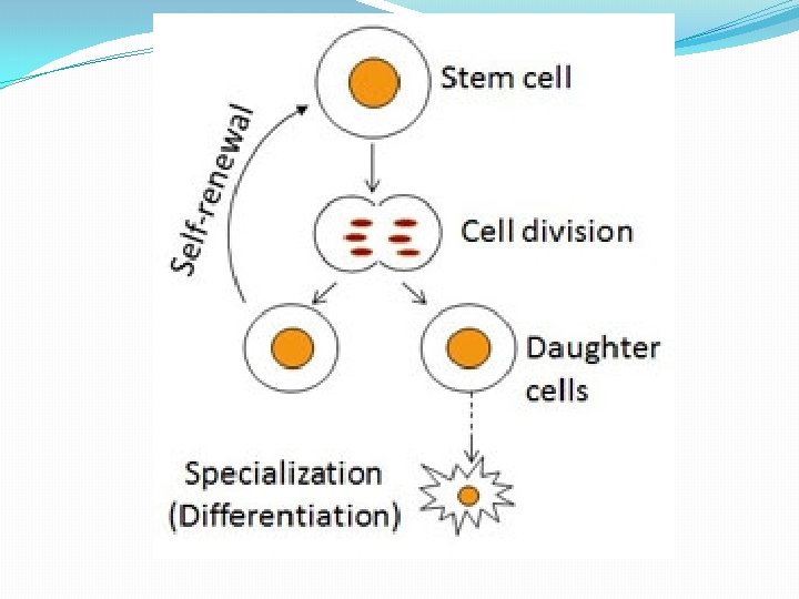 HOW? �It does this by undergoing an amazing process differentiating, or changing into another type of cell. �Each time a stem cell divides, one of the new cells might remain a stem cell while the other turns into a heart, blood, brain, or other type of cell. �In fact, stem cells are able to divide to replenish themselves and other cells without any apparent limit.