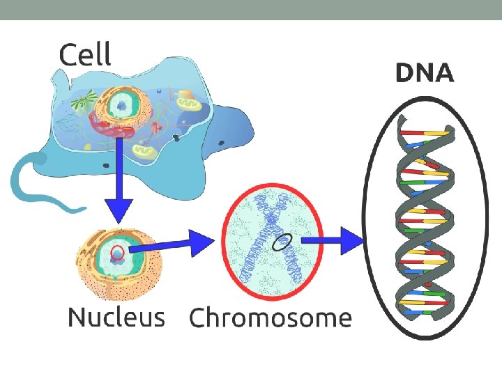 • • • What is DNA? The nucleus contains the master set of instruction that determines what each cell will become, how it will function, how long it will live before being replaced, and other details about the organisms life Each new cell needs to inherit a set of instructions from the original cell; these instructions are carried in chromosomes. Chromosomes are made of deoxyribonucleic acid (DNA)
