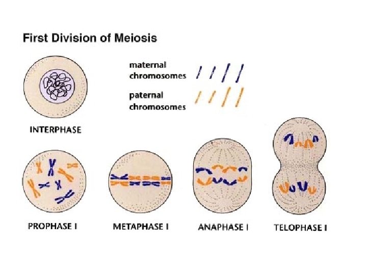 Meiosis -a process of reduction division in which the number of chromosomes per cell is cut in half through the separation of homologous chromosomes in a diploid cell homologous pairs- each chromosome set has one from male and one from female parent