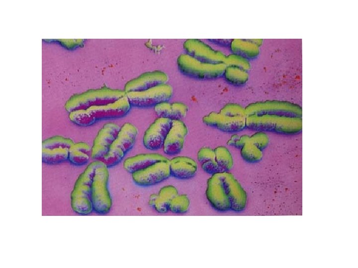 Chromosomes -carry genetic info -condensed form of DNA and protein -only visible during cell division b/c they come together -are copied before cell division to get two sister chromatids -chromatids are attached by centromeres -most human cells have 46 chromosomes (each with 2 sister chromatids)