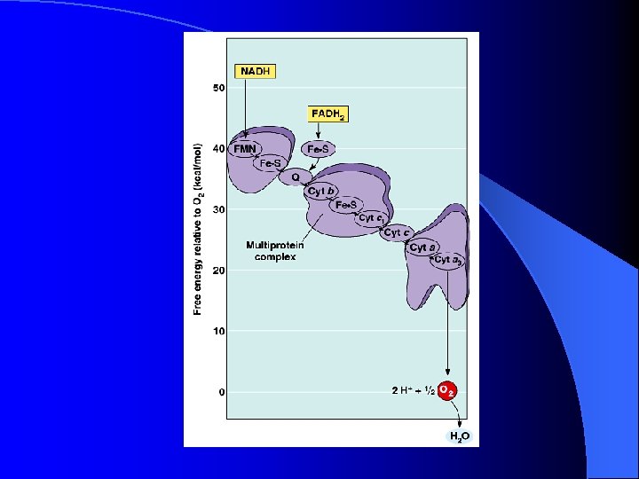 1. 2. 3. 4. 5. Electrons carried by NADH are transferred to the first molecule in the electron transport chain The electrons continue along the chain that includes several cytochrome proteins and one lipid carrier. The electrons carried by FADH 2 added to a later point in the chain. Electrons from NADH or FADH 2 ultimately pass to oxygen. The electron transport chain generates no ATP directly.