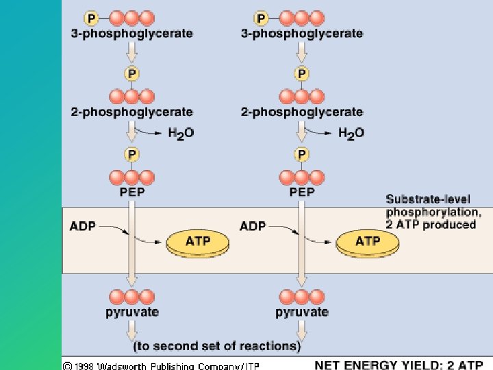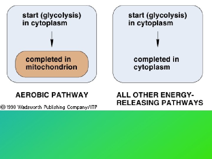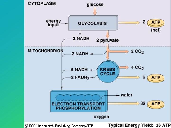 ONE GLUCOSE MOLECULE PRODUCES 34 -36 ATP Glycolysis 4 ATP Krebs Cycle 2 ATP ETC 2 are recycled back to allow glycolysis to continue (-2) 2 ATP • Glycolysis • Recycled • Kreb’s Cycle • Electron Transport Chain • 4 ATP -2 ATP 32 -34 ATP 34 -36 ATP